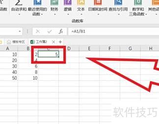 选定格子后,输入=A1/B1,按回车键确认即可完成操作。