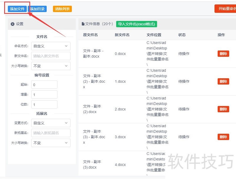 第二步,点击按钮导入需改名的Word文档,或直接用鼠标将文件拖入软件界面即可完成添加。