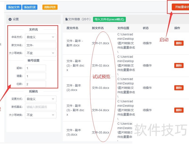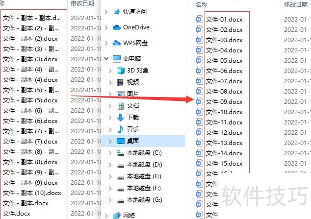 第4步,通过对比修改前后的Word文件名,可见修改后命名整齐规范,且带有递增数字序号。