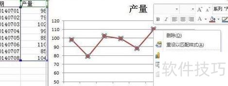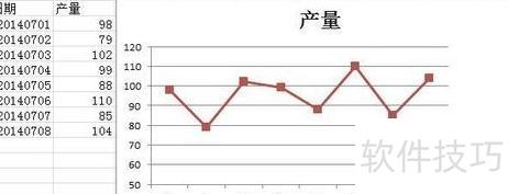 以图中数据为例,详细说明趋势线的添加步骤。图表显示某产品从7月1日至7月8日的每日产量情况。