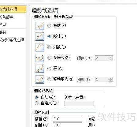 执行步骤1后,将弹出设计趋势线格式对话框。