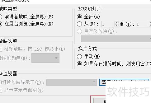 点击后,播放幻灯片时将不显示旁白,放映将以当前窗口尺寸进行。