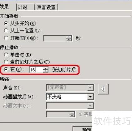 首先需设定音乐播放时长,即音乐在多久后自动停止。通常可按幻灯片数量填写相应数字,但该数值实际代表的是播放过程中幻灯片切换的次数,而非单纯的页数。