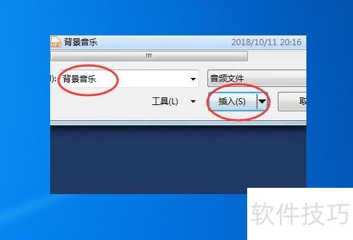 打开PPT,点击顶部工具栏的插入,在媒体中选择音频,点击PC上的音频,在弹出窗口中选中所需音乐文件,最后点击插入即可完成操作。