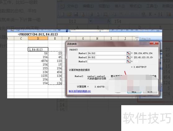 完成第一组数据乘积计算后,接下来计算第二组。点击函数参数框中number2右侧的按钮,即可开始选择下一组数据进行计算。