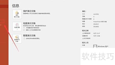 首先启动PPT软件,打开所需演示文稿,在界面左上角的工具栏中点击文件选项卡,所示,随后进入下一步操作。