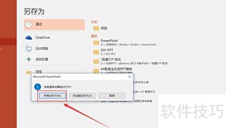 随后将弹出窗口,所示,请根据需求选择所有幻灯片或仅当前幻灯片。