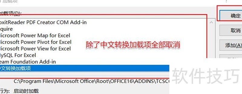 取消加载项后点击确定
