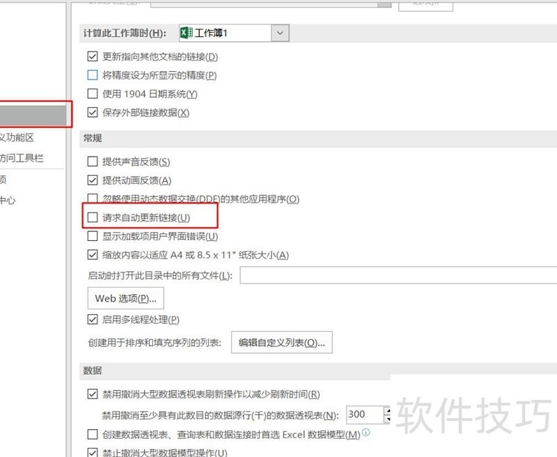 进入高级选项,取消勾选常规中的请求自动更新链接。