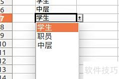 此外,还可利用数据有效性中的列表类型,为指定单元格设置预定义内容的输入限制。当点击该单元格时,右侧将显示下拉箭头,点击后可从中选择已设定的选项,方便快捷,避免输入错误。所示:
