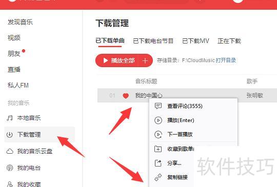 音乐下载完成后,进入下载管理,右键点击已下载的音乐文件,选择打开文件所在目录即可查看。