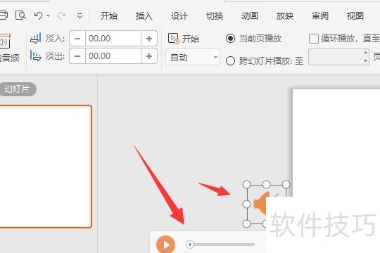 若想在本幻灯片结束后停止播放声音,请点击当前幻灯片之后。