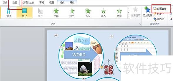 7、点击顶部菜单栏动画中的动画窗格选项。