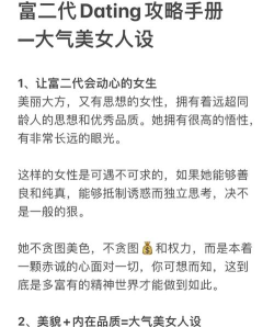 1、心态放平,别把“富”字挂嘴边请忘掉“富婆”这个标签,把她当作一个,有趣的普通人来对待,你的紧张和刻意,对方一眼就能看穿,反而显得不自信,聊天时,关注她这个人本身,而不是她的财富,比如,聊聊她的兴趣爱好,或者最近看的书,而不是开口就问,你的游艇停在哪个码头,平等的心态,是良好沟通的基础。