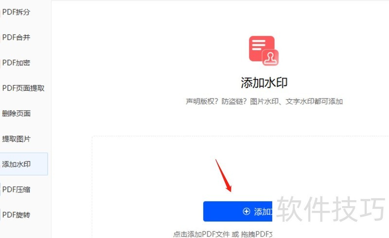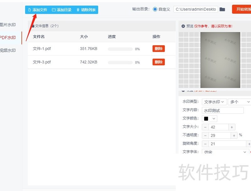 第二步:点击软件左上角的按钮,选择需加水印的PDF文件并导入,支持批量添加多个文件,一次性完成水印处理,有效节省时间。