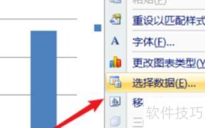 打开Excel表格,找到柱状图,右键点击图表,选择选择数据选项。