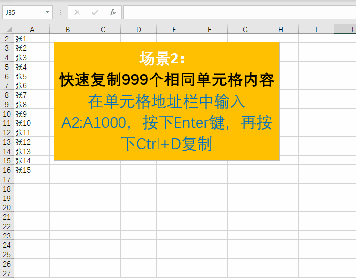 操作十分简单,如动图所示,点击表格左上角的单元格地址栏,输入要填充数据的区域范围,例如A2:A1000,按Enter键确认,即可选中该区域,接着按下Ctrl+D快捷键,系统便会自动将选定区域内的首个单元格内容复制并填充至整个目标范围,快速完成批量操作。