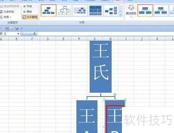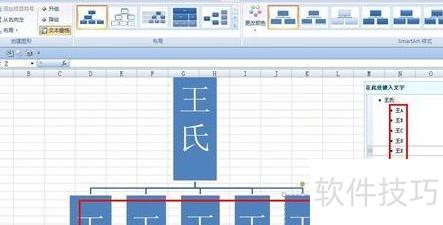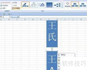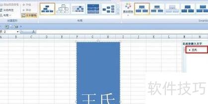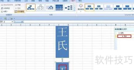 删除组织图多余部分,保留一图形并调整为竖直矩形,在右侧框内输入王氏,然后右击该形状。
