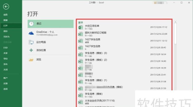 此外,除了通过设置项整体清除所有记录,用户还可以针对个别文件进行手动删除。具体方法如下:进入Excel主界面后,点击左上角的文件选项卡,进入后台管理视图。在左侧导航栏中选择打开选项,右侧便会列出最近访问过的文件列表。
