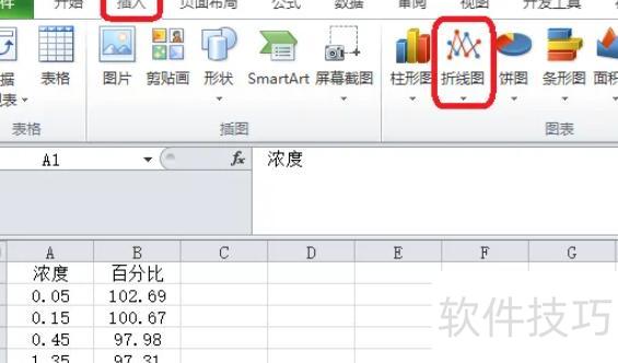 在菜单中选择包含数据点与平滑曲线的散点图类型,即可生成平滑曲线。