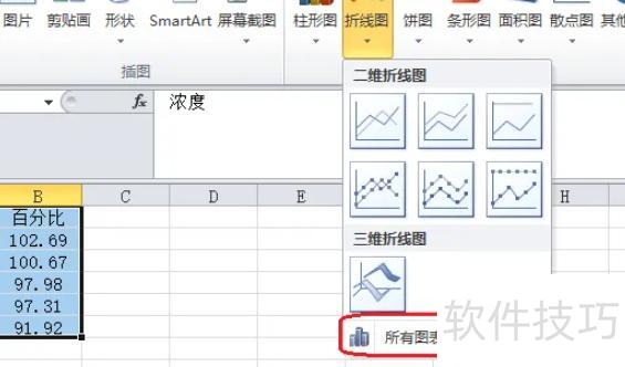 点击折线图下拉箭头,选择全部图表类型。