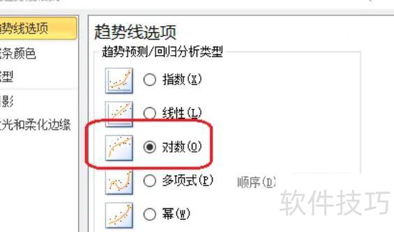 在趋势线选项菜单中选择所需曲线类型,并勾选底部显示公式及显示R平方值的复选框。