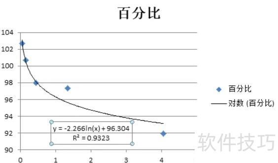 勾选显示公式和显示R平方复选框,即可获得所需曲线、公式及相对误差。