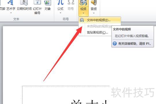 该方法将视频文件作为对象插入幻灯片,不同于前两种方式,可自由选取所需播放的视频片段,再进行播放,灵活性更高。