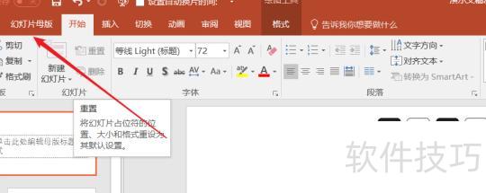 仅保留所示内容,点击开始调整文字位置、大小及表格,完成后关闭母版,最后通过版式应用修改全部版式。