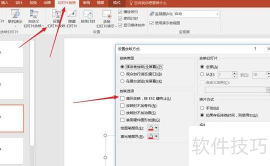 设置幻灯片放映循环后,可自行调整背景等选项,点击鼠标或按ESC键即可停止播放,希望此方法能对大家有所帮助。