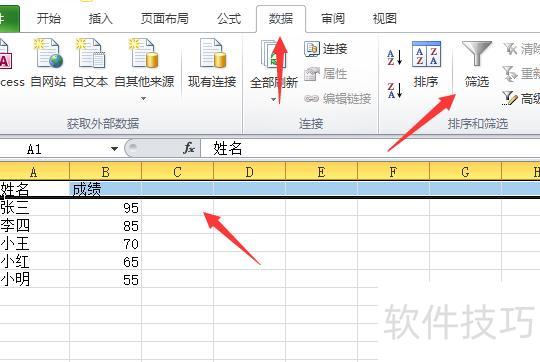 在数据功能区点击筛选按钮。