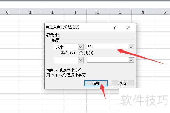 在弹出的对话框内输入筛选条件,确认即可。