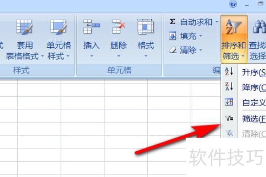 接着从下拉菜单中选择筛选功能。