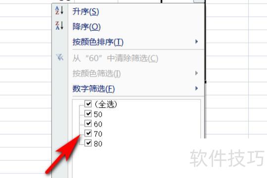 点击下拉框,在数字筛选中勾选所需数据即可完成筛选。