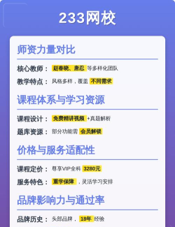 2、老师讲得好不好,教学水平如何课程有了,老师是关键,233网校的老师,很多是,行业内的专家,或者,有丰富教学经验的讲师,他们讲课,通常比较系统,知识点,梳理得清晰,对于应试,很有帮助,很多学员反馈,跟着老师学,重点突出,容易理解,当然,老师风格,因人而异,有的风趣,有的严谨,你可以,先试听一下,看看哪位老师,更适合你,毕竟,听得进去,才能学得好。