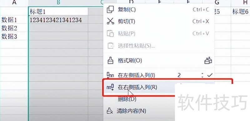 若要在B列和C列之间插入新列,只需选中B列,右键点击并选择插入列即可完成操作。