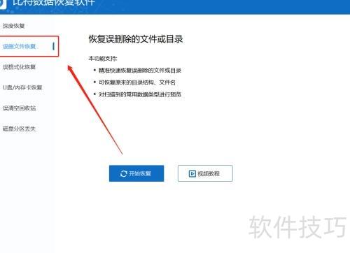双击运行比特数据恢复软件,选择首页的误删文件恢复功能。