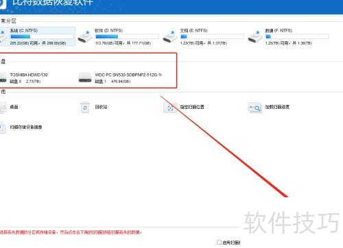 选择目标磁盘,点击进入扫描以恢复数据。