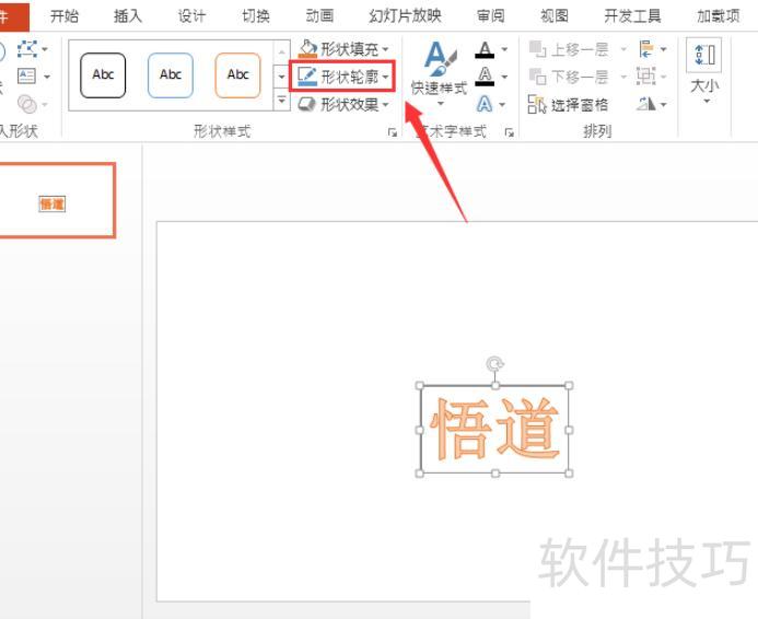 选择字体后在编辑区输入文字,进入菜单中的格式选项,点击后找到并选择形状轮廓进行设置。