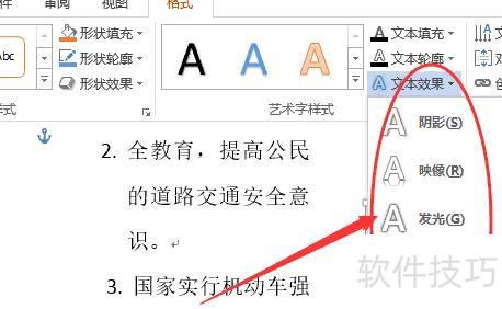 在格式选项右侧找到文本效果,点击其后的下拉箭头,即可看到多种样式供选择。