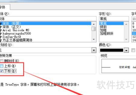 在弹出的窗口中选择上标或下标,点击确认即可,所示。