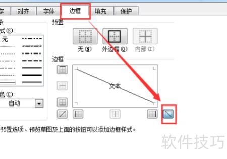 点击弹出窗口中边框选项下的斜线边框,然后点击确认按钮,所示。