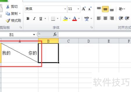 Excel中斜杠分割表格的方法如下: