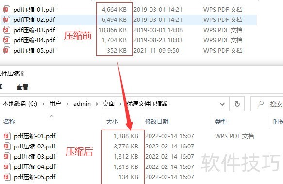 第四步,从上述例子可见,压缩后的PDF文件体积明显小于压缩前。