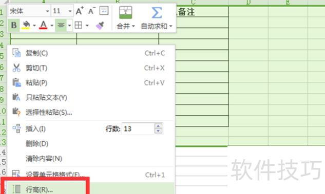 选中目标单元格,点击工具栏格式按钮,选择设置行高并输入数值,确认后所有单元格将统一为设定大小。