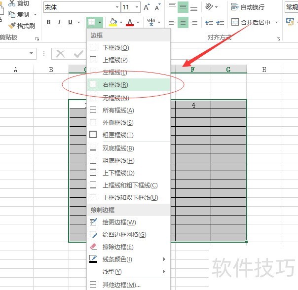 以设置右边框为例,操作如下:完成上述步骤后,选中需添加边框的表格区域,所示,进入下一步。