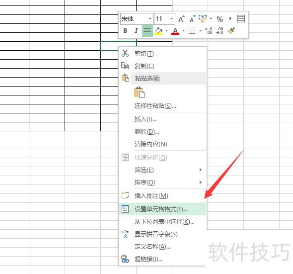 7. 另一种方法是右键点击目标单元格,即可弹出所示的设置选项。