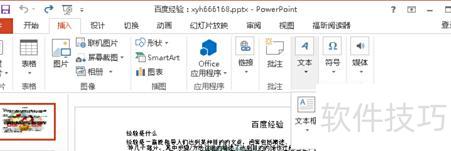 点击菜单栏插入,打开工具栏后选择文本选项,所示。