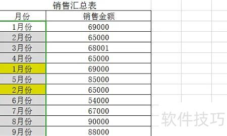 点击选择月份所在列的单元格。