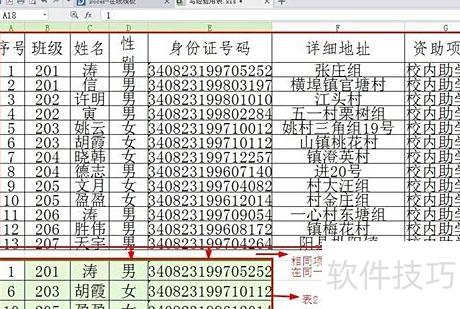 先备份表格1,复制表格2内容,再按姓名、身份证等相同列项对应粘贴至表格1下方。